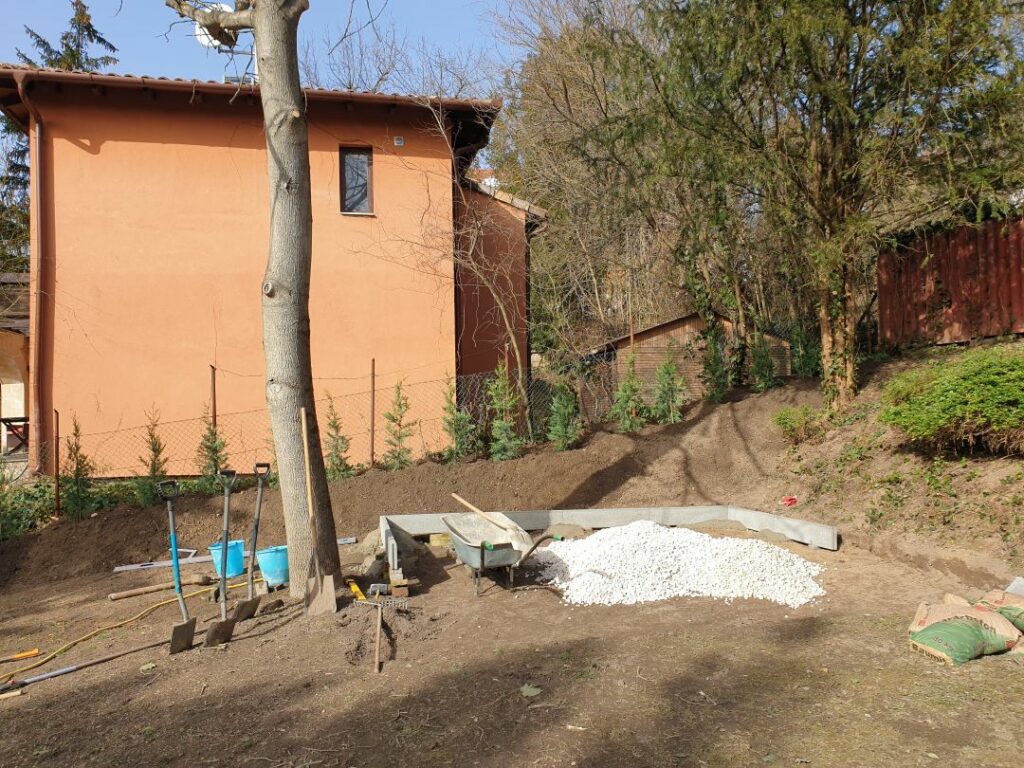 Földmunka és a szükséges szint kialakítása.